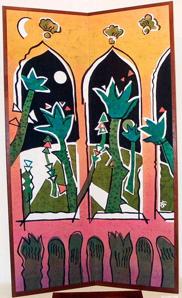 安芸和美オリジナルポストカード、染色作品、タピストリー、二曲屏風、風呂先屏風、四曲屏風など、販売しています。